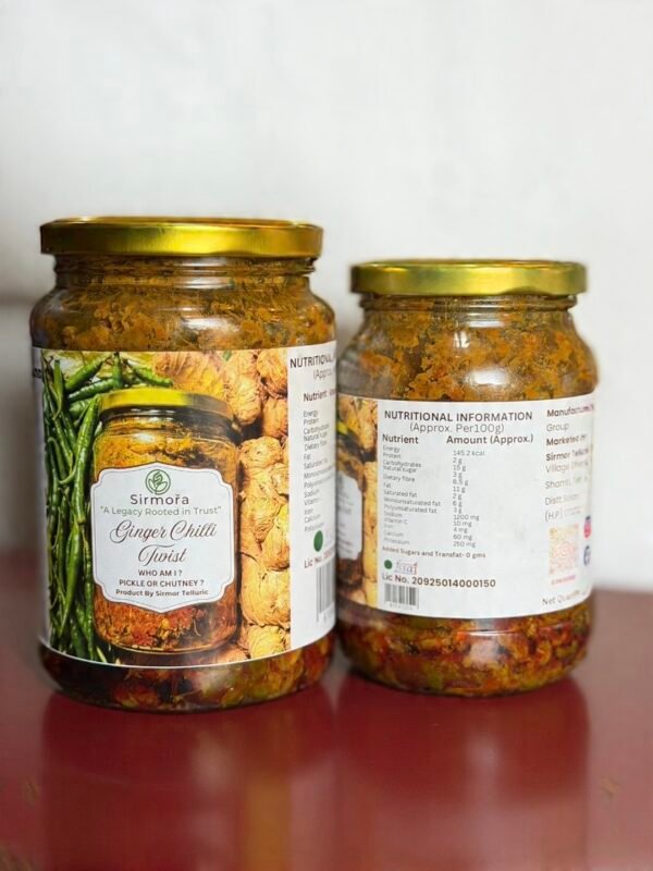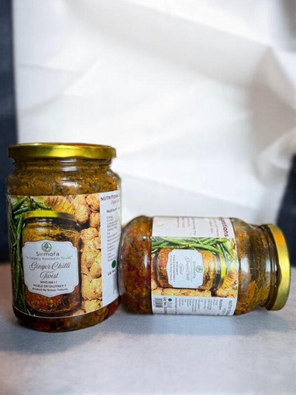 Bold, fiery and irresistibly aromatic — Ginger Chilli Twist is a unique handcrafted creation where freshly grated ginger meets green chillies, slow-mixed with traditional Himalayan spices and pure mustard oil. Neither fully a pickle nor just a chutney, its luscious, spoonable consistency makes it a twist on tradition.